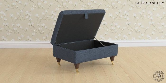 6.12.1 Buy Beaumaris by Laura Ashley Storage Footstool Lundar Chenille Navy Blue Low Brass Castor - Chestnut from the Next UK online shop Click here to use our accessible website