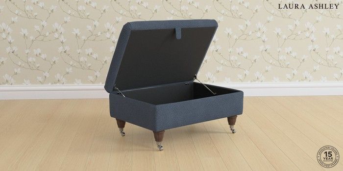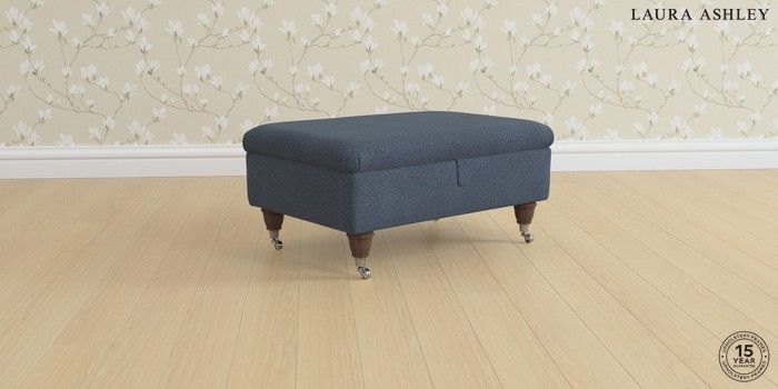 6.12.1 Buy Beaumaris by Laura Ashley Storage Footstool Lundar Chenille Navy Blue Low Chrome Castor - Chestnut from the Next UK online shop Click here to use our accessible website