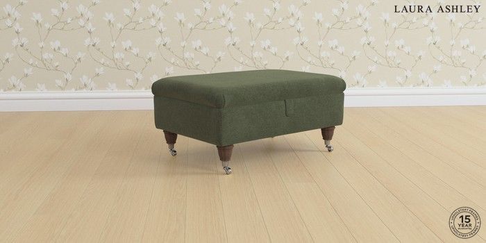 6.12.1 Buy Beaumaris by Laura Ashley Storage Footstool Lundar Chenille Ivy Green Low Chrome Castor - Chestnut from the Next UK online shop Click here to use our accessible website