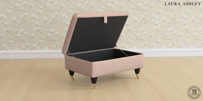 6.12.1 Buy Beaumaris by Laura Ashley Storage Footstool Melbreak Geo Chalk Pink Low Brass Castor - Black from the Next UK online shop Click here to use our accessible website