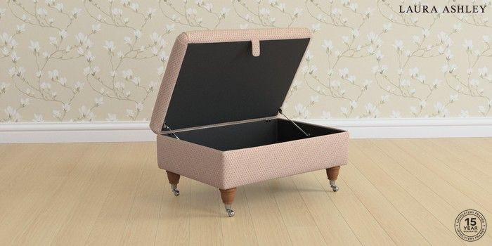 6.12.1 Buy Beaumaris by Laura Ashley Storage Footstool Melbreak Geo Chalk Pink Low Chrome Castor - Teak from the Next UK online shop Click here to use our accessible website