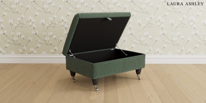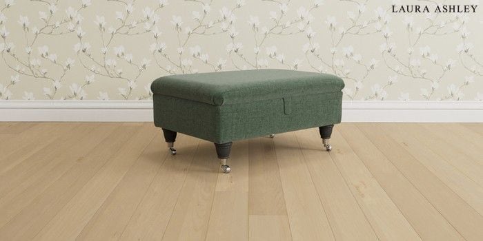 6.12.1 Buy Beaumaris by Laura Ashley Storage Footstool Nantmor Fern Green Low Chrome Castor - Black from the Next UK online shop Click here to use our accessible website