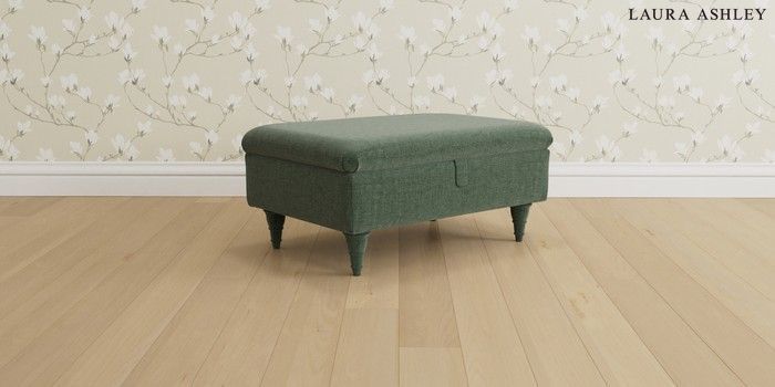 6.12.1 Buy Beaumaris by Laura Ashley Storage Footstool Nantmor Fern Green Low Turned - Teak from the Next UK online shop Click here to use our accessible website