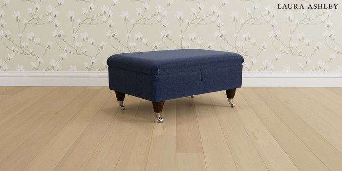 6.12.1 Buy Beaumaris by Laura Ashley Storage Footstool Nantmor Midnight Navy Low Chrome Castor - Chestnut from the Next UK online shop Click here to use our accessible website