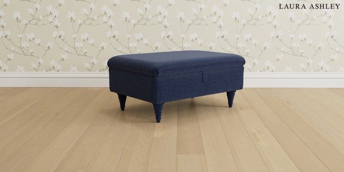 6.12.1 Buy Beaumaris by Laura Ashley Storage Footstool Nantmor Midnight Navy Low Turned - Light Oak from the Next UK online shop Click here to use our accessible website