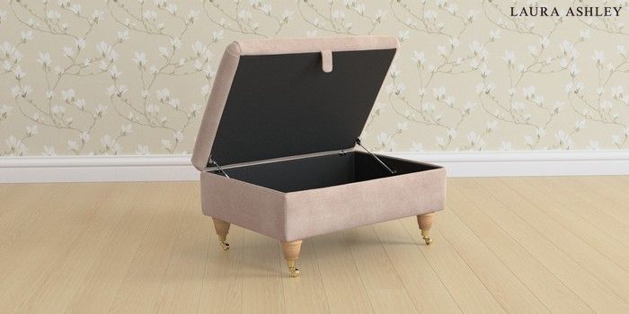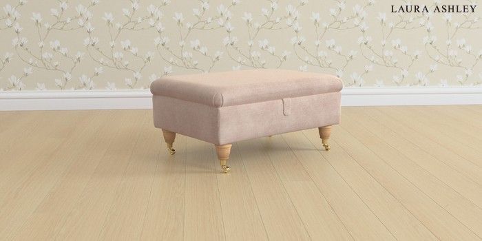 6.12.1 Buy Beaumaris by Laura Ashley Storage Footstool Orla Chalk Pink Low Brass Castor - Light Oak from the Next UK online shop Click here to use our accessible website