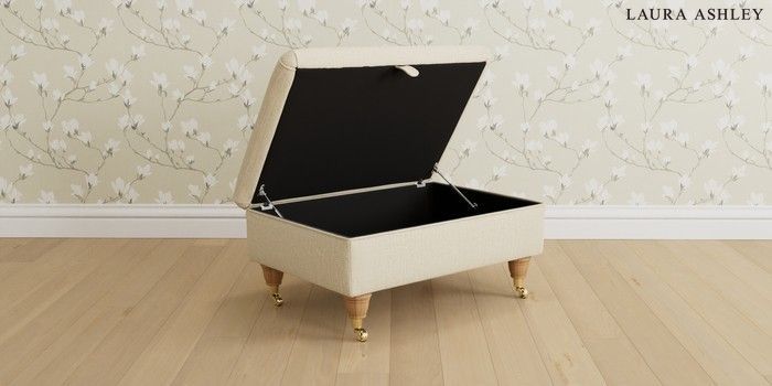 6.12.1 Buy Beaumaris by Laura Ashley Storage Footstool Orla Oyster Natural Low Brass Castor - Light Oak from the Next UK online shop Click here to use our accessible website