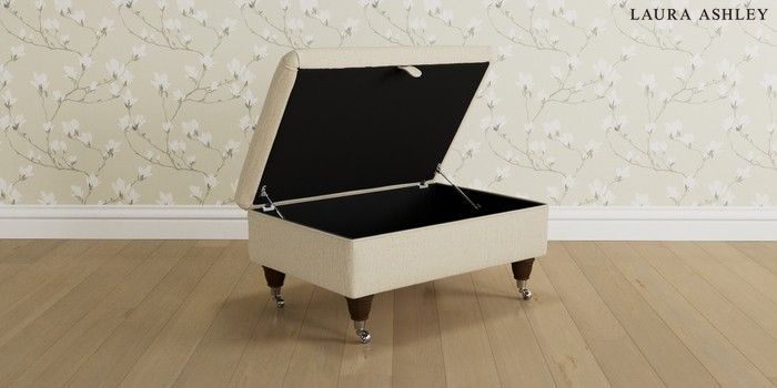 6.12.1 Buy Beaumaris by Laura Ashley Storage Footstool Orla Oyster Natural Low Chrome Castor - Chestnut from the Next UK online shop Click here to use our accessible website