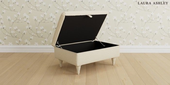 6.12.1 Buy Beaumaris by Laura Ashley Storage Footstool Orla Oyster Natural Low Turned - Light Oak from the Next UK online shop Click here to use our accessible website