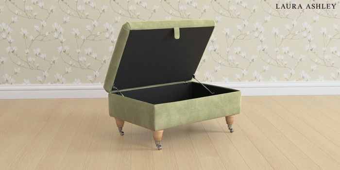 6.12.1 Buy Beaumaris by Laura Ashley Storage Footstool Orla Pale Hedgerow Green Low Chrome Castor - Light Oak from the Next UK online shop Click here to use our accessible website