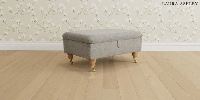 6.12.1 Buy Beaumaris by Laura Ashley Storage Footstool Orla Pale Steel Grey Low Brass Castor - Light Oak from the Next UK online shop Click here to use our accessible website