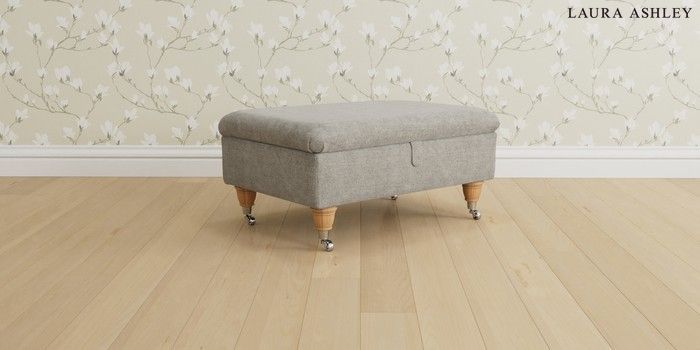 6.12.1 Buy Beaumaris by Laura Ashley Storage Footstool Orla Pale Steel Grey Low Chrome Castor - Light Oak from the Next UK online shop Click here to use our accessible website