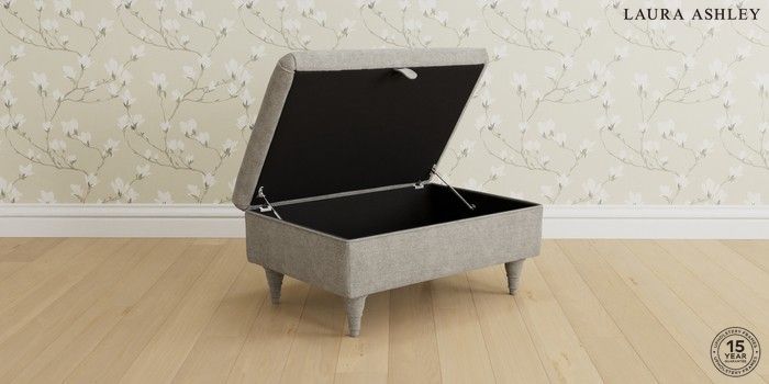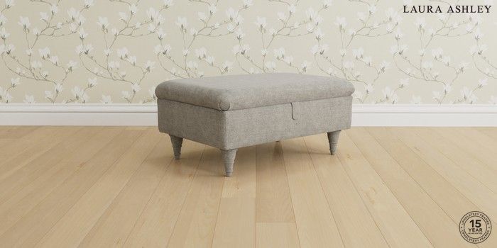 6.12.1 Buy Beaumaris by Laura Ashley Storage Footstool Orla Pale Steel Grey Low Turned - Chestnut from the Next UK online shop Click here to use our accessible website