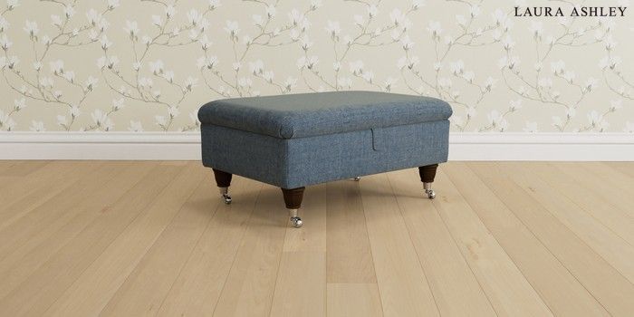 6.12.1 Buy Beaumaris by Laura Ashley Storage Footstool Orla Seaspray Blue Low Chrome Castor - Chestnut from the Next UK online shop Click here to use our accessible website