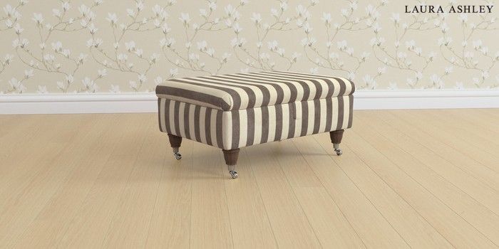 6.12.13 Buy Beaumaris by Laura Ashley Storage Footstool Orla Stripe Dark Truffle Natural Low Chrome Castor - Chestnut from the Next UK online shop Click here to use our accessible website
