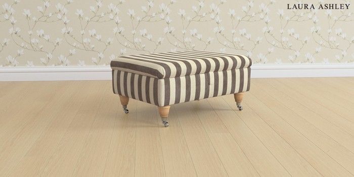 6.12.13 Buy Beaumaris by Laura Ashley Storage Footstool Orla Stripe Dark Truffle Natural Low Chrome Castor - Light Oak from the Next UK online shop Click here to use our accessible website