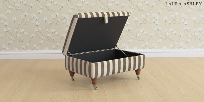 6.12.13 Buy Beaumaris by Laura Ashley Storage Footstool Orla Stripe Dark Truffle Natural Low Chrome Castor - Teak from the Next UK online shop Click here to use our accessible website