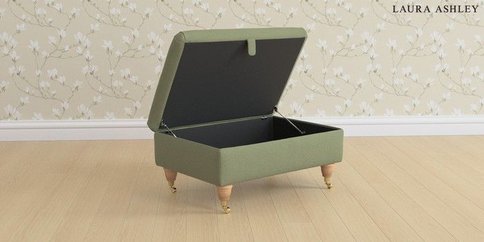6.12.1 Buy Beaumaris by Laura Ashley Storage Footstool Peyton Hedgerow Green Low Brass Castor - Light Oak from the Next UK online shop Click here to use our accessible website