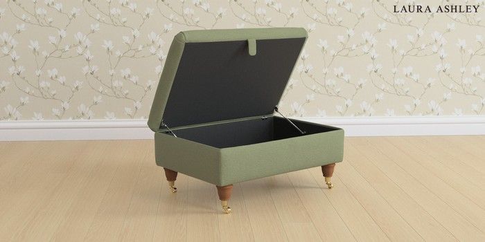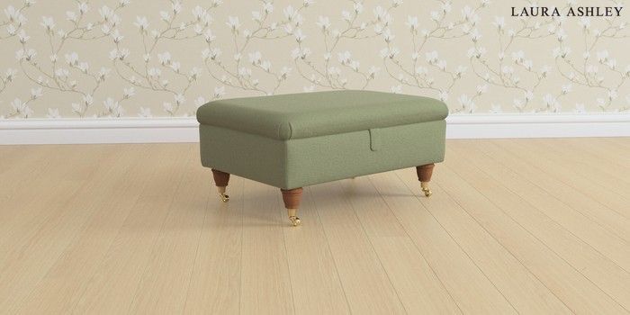 6.12.1 Buy Beaumaris by Laura Ashley Storage Footstool Peyton Hedgerow Green Low Brass Castor - Teak from the Next UK online shop Click here to use our accessible website