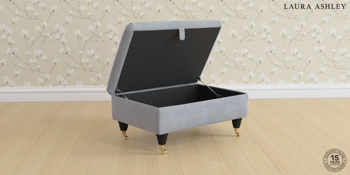 6.12.1 Buy Beaumaris by Laura Ashley Storage Footstool Peyton Powder Blue Low Brass Castor - Black from the Next UK online shop Click here to use our accessible website