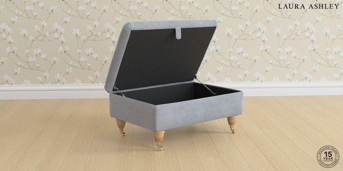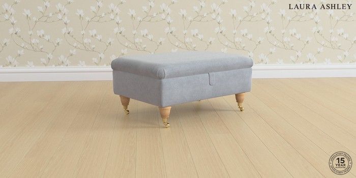 6.12.1 Buy Beaumaris by Laura Ashley Storage Footstool Peyton Powder Blue Low Brass Castor - Light Oak from the Next UK online shop Click here to use our accessible website