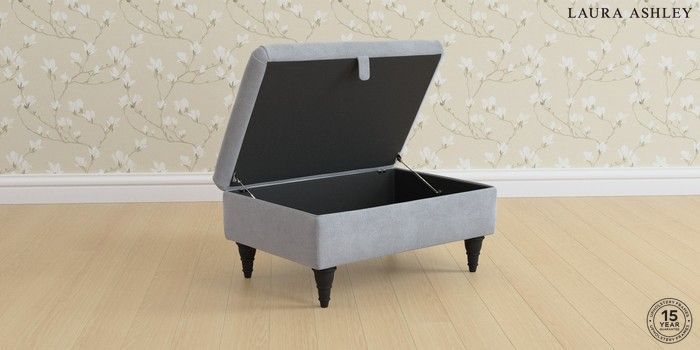 6.12.1 Buy Beaumaris by Laura Ashley Storage Footstool Peyton Powder Blue Low Turned - Black from the Next UK online shop Click here to use our accessible website