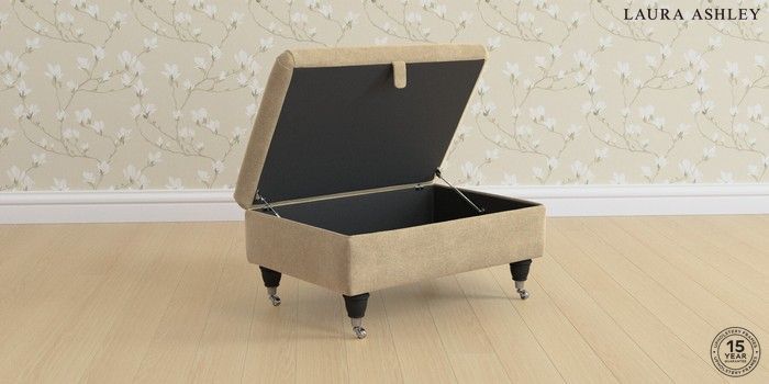 6.12.1 Buy Beaumaris by Laura Ashley Storage Footstool Peyton Sable Natural Low Chrome Castor - Black from the Next UK online shop Click here to use our accessible website