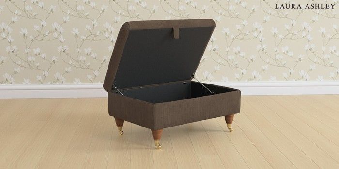 6.12.1 Buy Beaumaris by Laura Ashley Storage Footstool Sinclair Cord Chocolate Brown Low Brass Castor - Teak from the Next UK online shop Click here to use our accessible website