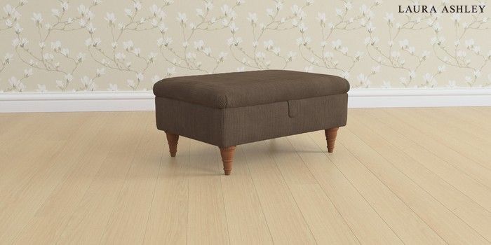 6.12.1 Buy Beaumaris by Laura Ashley Storage Footstool Sinclair Cord Chocolate Brown Low Turned - Teak from the Next UK online shop Click here to use our accessible website