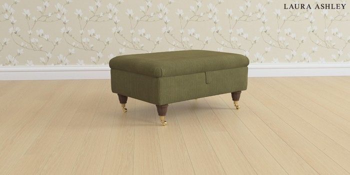 6.12.1 Buy Beaumaris by Laura Ashley Storage Footstool Sinclair Cord Ivy Green Low Brass Castor - Chestnut from the Next UK online shop Click here to use our accessible website