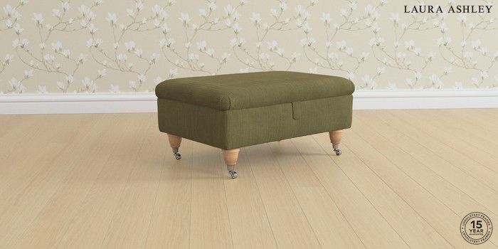6.12.1 Buy Beaumaris by Laura Ashley Storage Footstool Sinclair Cord Ivy Green Low Chrome Castor - Light Oak from the Next UK online shop Click here to use our accessible website