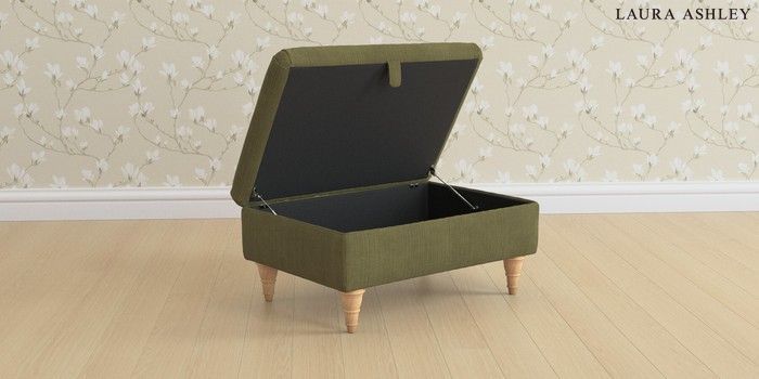 6.12.1 Buy Beaumaris by Laura Ashley Storage Footstool Sinclair Cord Ivy Green Low Turned - Light Oak from the Next UK online shop Click here to use our accessible website
