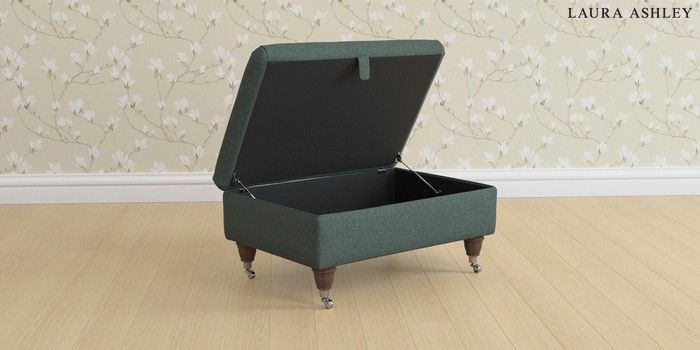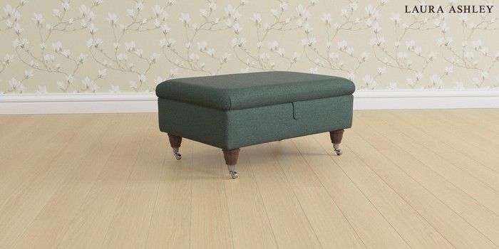 6.12.1 Buy Beaumaris by Laura Ashley Storage Footstool Wooton Forest Green Low Chrome Castor - Chestnut from the Next UK online shop Click here to use our accessible website