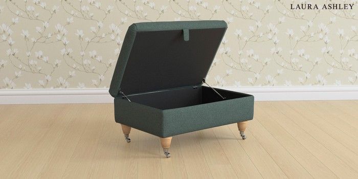 6.12.1 Buy Beaumaris by Laura Ashley Storage Footstool Wooton Forest Green Low Chrome Castor - Light Oak from the Next UK online shop Click here to use our accessible website