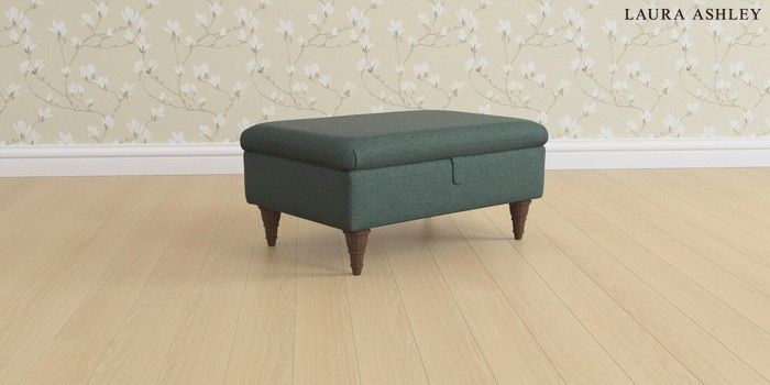 6.12.1 Buy Beaumaris by Laura Ashley Storage Footstool Wooton Forest Green Low Turned - Chestnut from the Next UK online shop Click here to use our accessible website