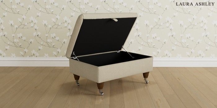 6.12.1 Buy Beaumaris by Laura Ashley Storage Footstool Wooton Natural Low Chrome Castor - Teak from the Next UK online shop Click here to use our accessible website