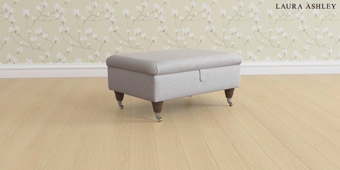 6.12.1 Buy Beaumaris by Laura Ashley Storage Footstool Wooton Pale Steel Grey Low Chrome Castor - Chestnut from the Next UK online shop Click here to use our accessible website