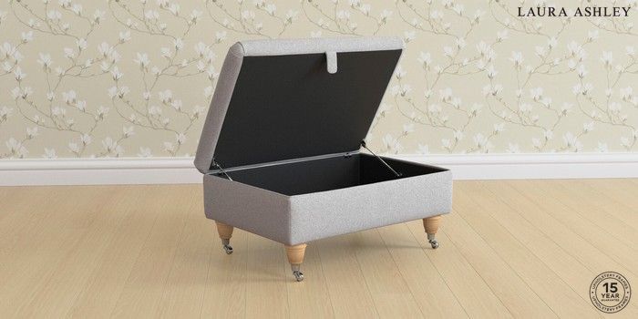 6.12.1 Buy Beaumaris by Laura Ashley Storage Footstool Wooton Pale Steel Grey Low Chrome Castor - Light Oak from the Next UK online shop Click here to use our accessible website
