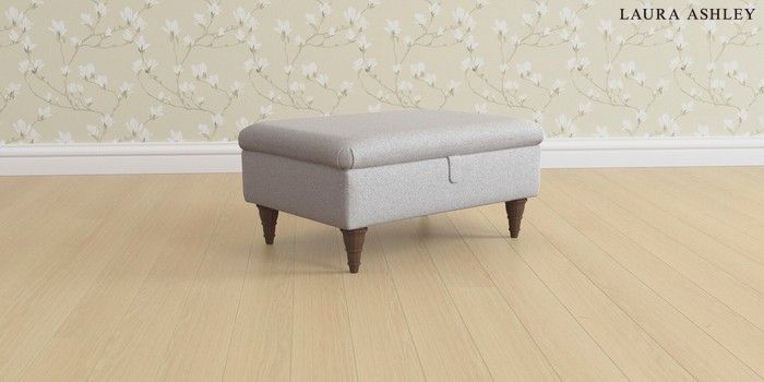 6.12.1 Buy Beaumaris by Laura Ashley Storage Footstool Wooton Pale Steel Grey Low Turned - Chestnut from the Next UK online shop Click here to use our accessible website