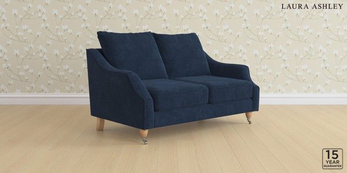 7.3.1 Buy Beverley by Laura Ashley 2 Seater Sofa Alwyn Velvet Midnight Navy Low Chrome Castor - Light Oak from the Next UK online shop Click here to use our accessible website