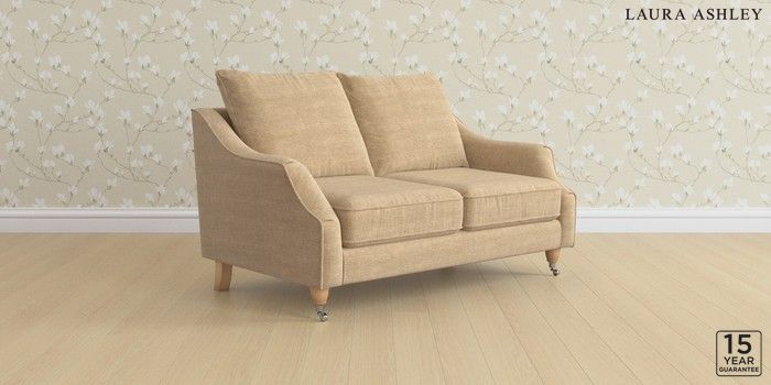 7.3.1 Buy Beverley by Laura Ashley 2 Seater Sofa Edwin Chenille Gold Natural Low Chrome Castor - Light Oak from the Next UK online shop Click here to use our accessible website