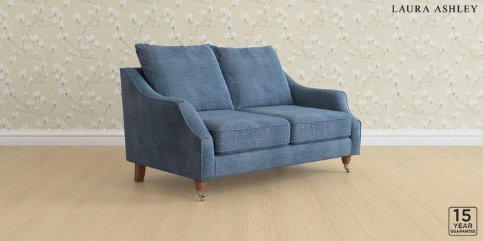 6.12.1 Buy Beverley by Laura Ashley 2 Seater Sofa Edwin Chenille Seaspray Blue Low Chrome Castor - Teak from the Next UK online shop Click here to use our accessible website