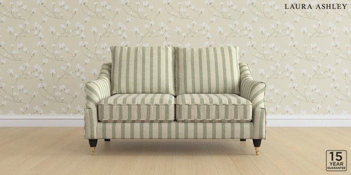6.12.1 Buy Beverley by Laura Ashley 2 Seater Sofa Kinsham Stripe Hedgerow Green Low Brass Castor - Black from the Next UK online shop Click here to use our accessible website