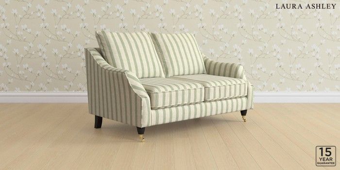7.3.1 Buy Beverley by Laura Ashley 2 Seater Sofa Kinsham Stripe Hedgerow Green Low Brass Castor - Black from the Next UK online shop Click here to use our accessible website