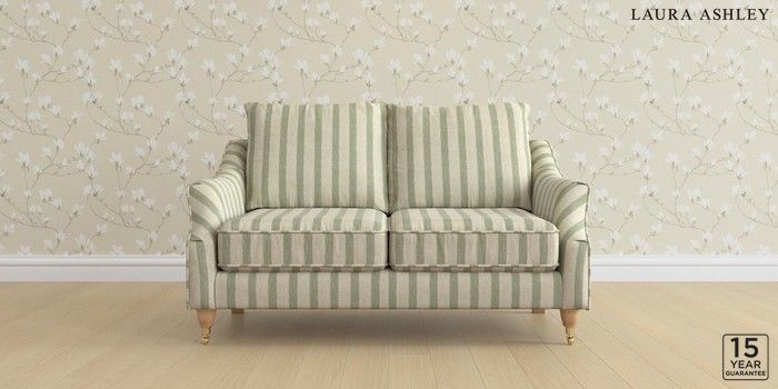 6.12.1 Buy Beverley by Laura Ashley 2 Seater Sofa Kinsham Stripe Hedgerow Green Low Brass Castor - Light Oak from the Next UK online shop Click here to use our accessible website