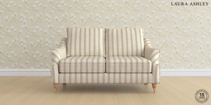 6.12.1 Buy Beverley by Laura Ashley 2 Seater Sofa Kinsham Stripe Natural Low Brass Castor - Light Oak from the Next UK online shop Click here to use our accessible website