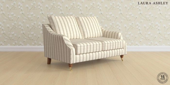 7.2.6 Buy Beverley by Laura Ashley 2 Seater Sofa Kinsham Stripe Natural Low Brass Castor - Teak from the Next UK online shop Click here to use our accessible website