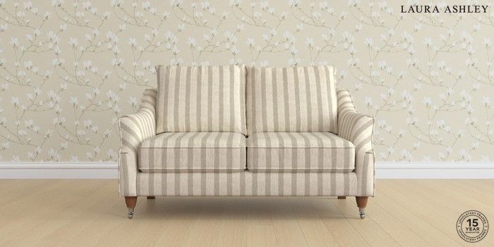 6.12.1 Buy Beverley by Laura Ashley 2 Seater Sofa Kinsham Stripe Natural Low Chrome Castor - Teak from the Next UK online shop Click here to use our accessible website