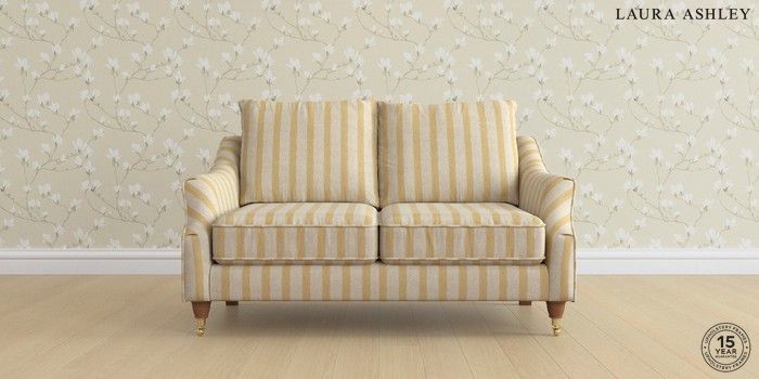 7.0.3 Buy Beverley by Laura Ashley 2 Seater Sofa Kinsham Stripe Ochre Yellow Low Brass Castor - Teak from the Next UK online shop Click here to use our accessible website