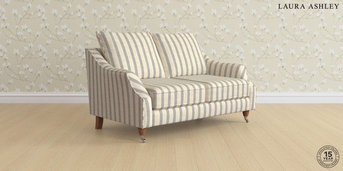7.2.6 Buy Beverley by Laura Ashley 2 Seater Sofa Kinsham Stripe Seaspray Blue Low Chrome Castor - Teak from the Next UK online shop Click here to use our accessible website
